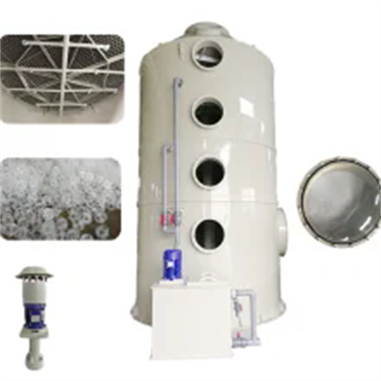 · 填料层:塔内填充PP多面空心球或花环填料,极大地增加气液接触面积,提高除尘效率。