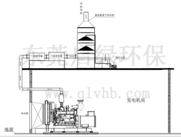 发电机尾气黑烟废气处理工程工艺流程平面图示